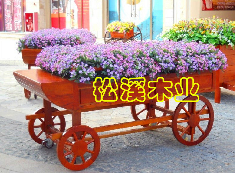 防腐木景观花箱花车木制花箱花车花架花槽 防腐木花车 木质花车